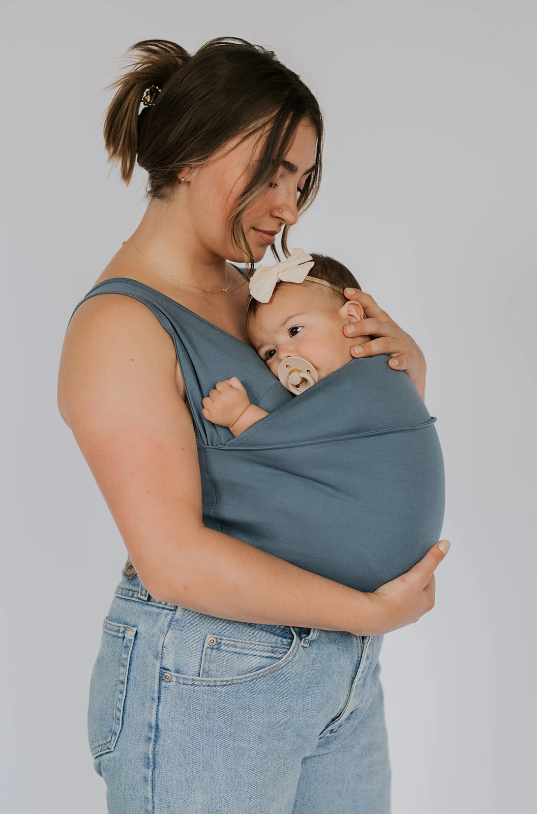 Supports newborns up to 15 lbs. Use as a nursing top beyond that. For babies 13–28 lbs, try our Simple Wrap.